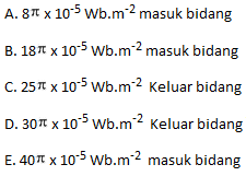 Bila jari jari lingkaran sebesar 5 cm, maka besar arah induksi di titik O adalah ….