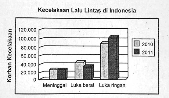 c. Jumlah korban luka ringan tahun 2010 lebih banyak dari tahun 2011