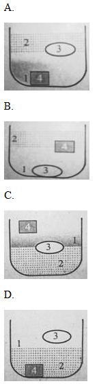 Berdasarkan data tersebut, jika keempat zat dimasukkan ke dalam bejana, maka gambar yang benar adalah ….