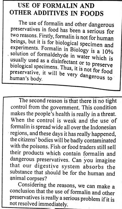 E. Food seller is supposed to pour formalin for vegetable and food product