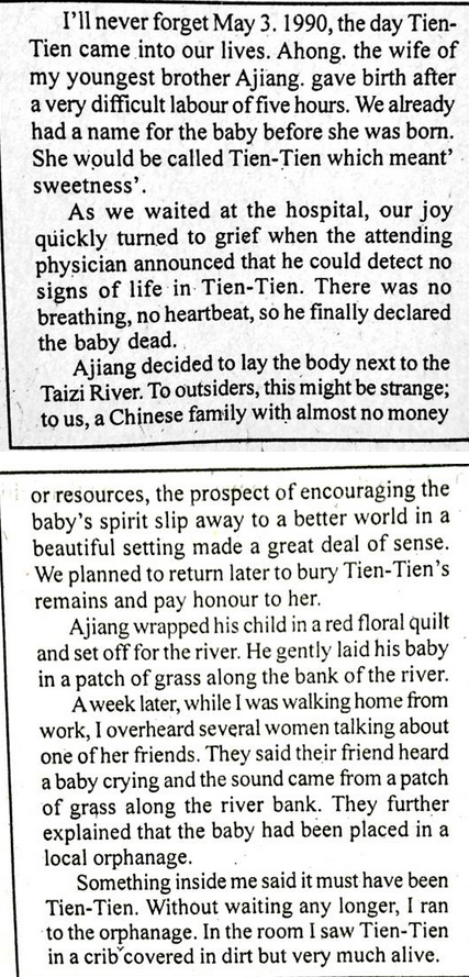E. Tien-tien’s remains had been buried in the river bank