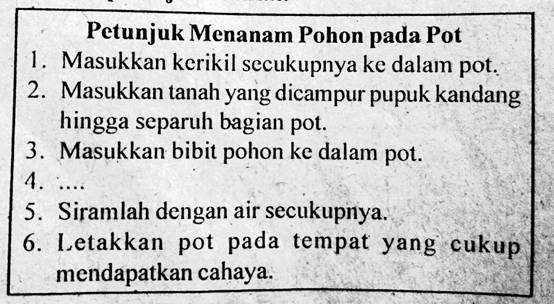 Kalimat yang tepat untuk melengkapi petunjuk tersebut adalah…
