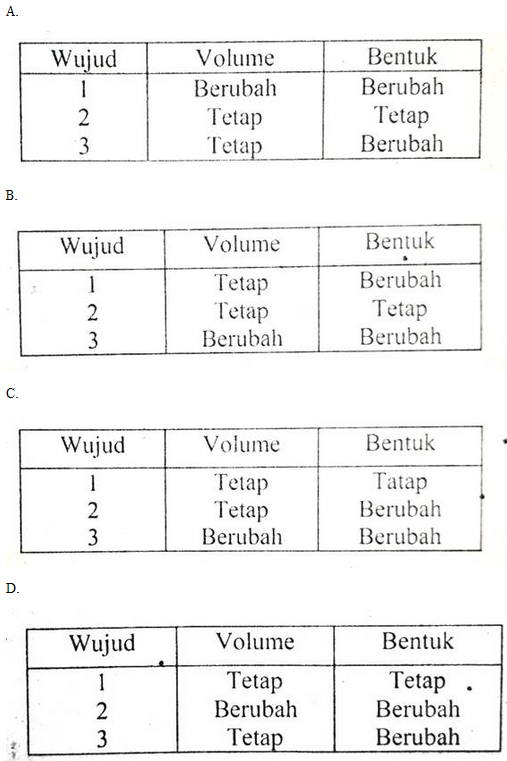 Tabel yang menunjukkan sifat yang benar benda-benda pada gambar adalah ….